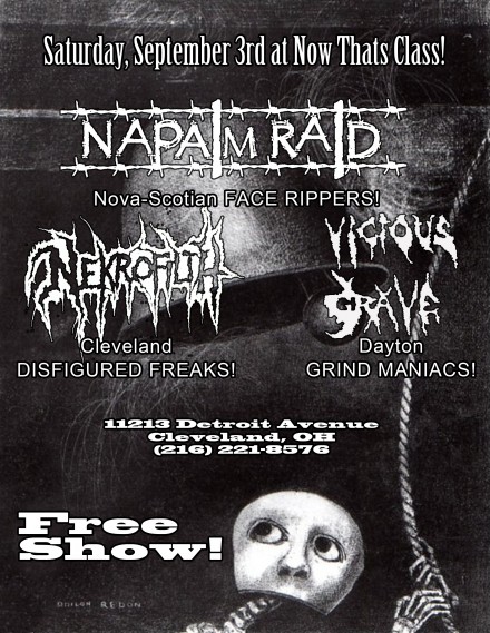 The return of NAPALM RAID! Great crust from Halifax…we’re not even the hugest crust fans, but they were one of the best surprises we had last year, killer live band. Opening will be Nekrofilth and Vicious Grave. FREE SHOW!